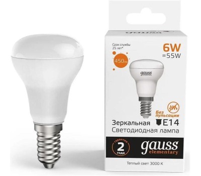 GAUSS Лампа светодиодная Elementary 63116 6Вт цок.:E14 рефлек. 220B св.свеч.бел.теп. (упак.:10шт)