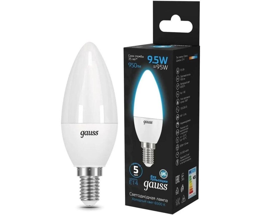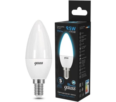 GAUSS Лампа светодиодная 103101310 9.5Вт цок.:E14 свеча 220B св.свеч.бел.хол. (упак.:10шт)