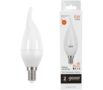GAUSS Лампа светодиодная Elementary 8Вт цок.:E14 свеча 220B св.свеч.бел.теп. (упак.:10шт) (34118)