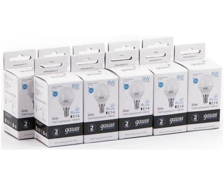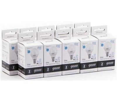 GAUSS Лампа светодиодная Elementary 8Вт цок.:E14 шар 220B св.свеч.бел.нейт. P45 (упак.:10шт) (53128)