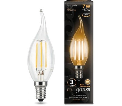 GAUSS Лампа светодиодная Filament 7Вт цок.:E14 свеча 220B св.свеч.бел.теп. CF35 (упак.:10шт) (104801107)