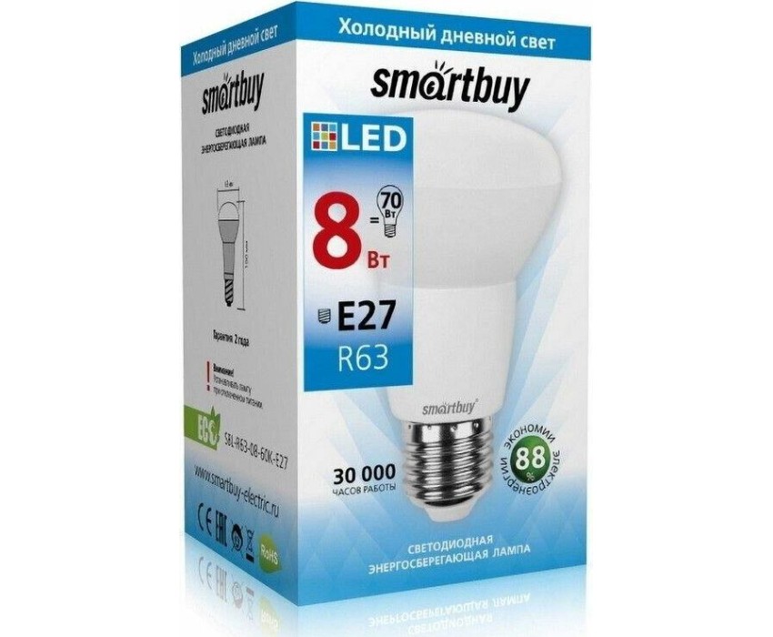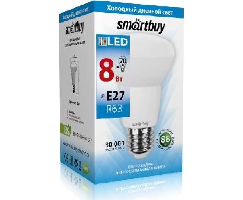 Светодиодная (LED) Лампа SMARTBUY (SBL-R63-08-60K-E27) 8W/6000/E27