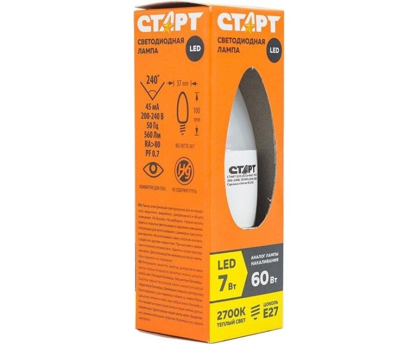 Лампа светодиодная СТАРТ (17279) LEDCANDLE E27 7W30 WS