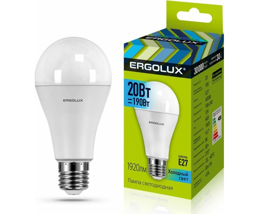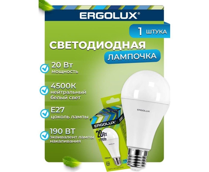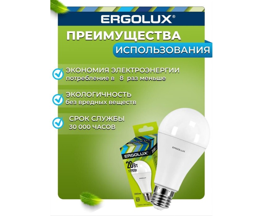 Ergolux LED-A65-20W-E27-4K (Эл.лампа светодиодная ЛОН 20Вт E27 4500K 172-265В)
