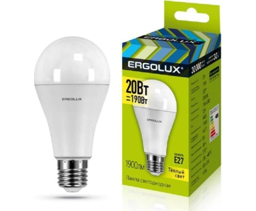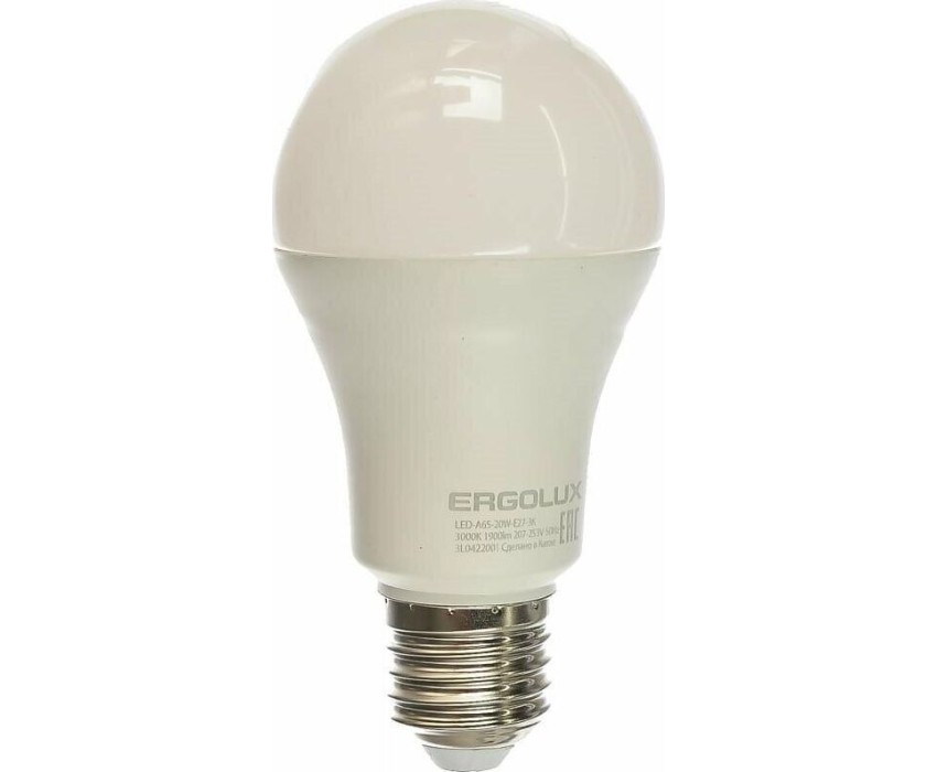 Ergolux LED-A65-20W-E27-3K (Эл.лампа светодиодная ЛОН 20Вт E27 3000K 172-265В)