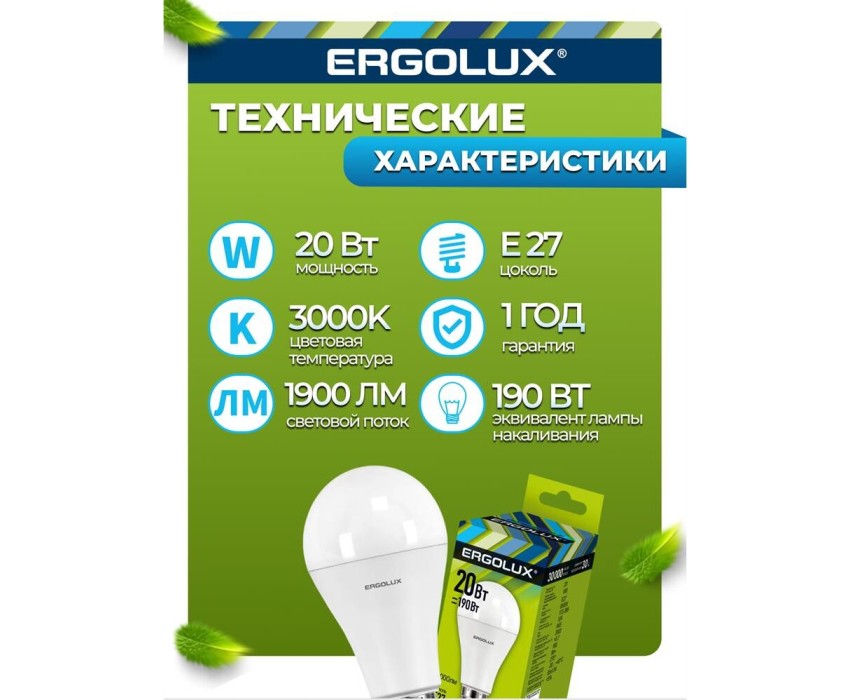 Лампочка светодиодная ERGOLUX (13182) LED-A65-20W-E27-3K