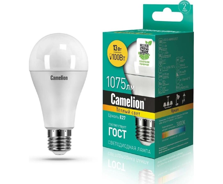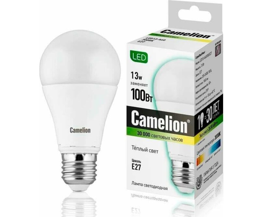 Лампа светодиодная CAMELION (12045) LED13-A60/830/E27