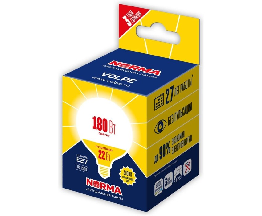 G (Лампы-глобы) VOLPE (UL-00004875) LED-G120-22W/3000K/E27/FR/NR