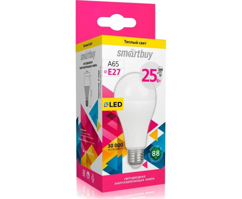Лампа SMARTBUY (SBL-A65-25-30K-E27) 25W/3000/E27