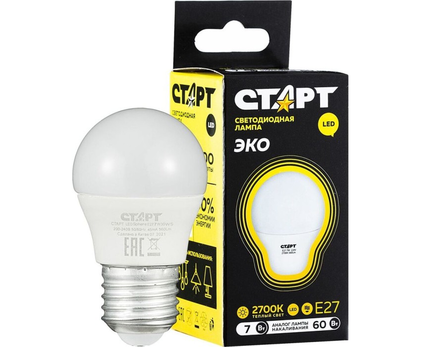 Лампа СТАРТ LEDSPHEREE27 7W 30 WS