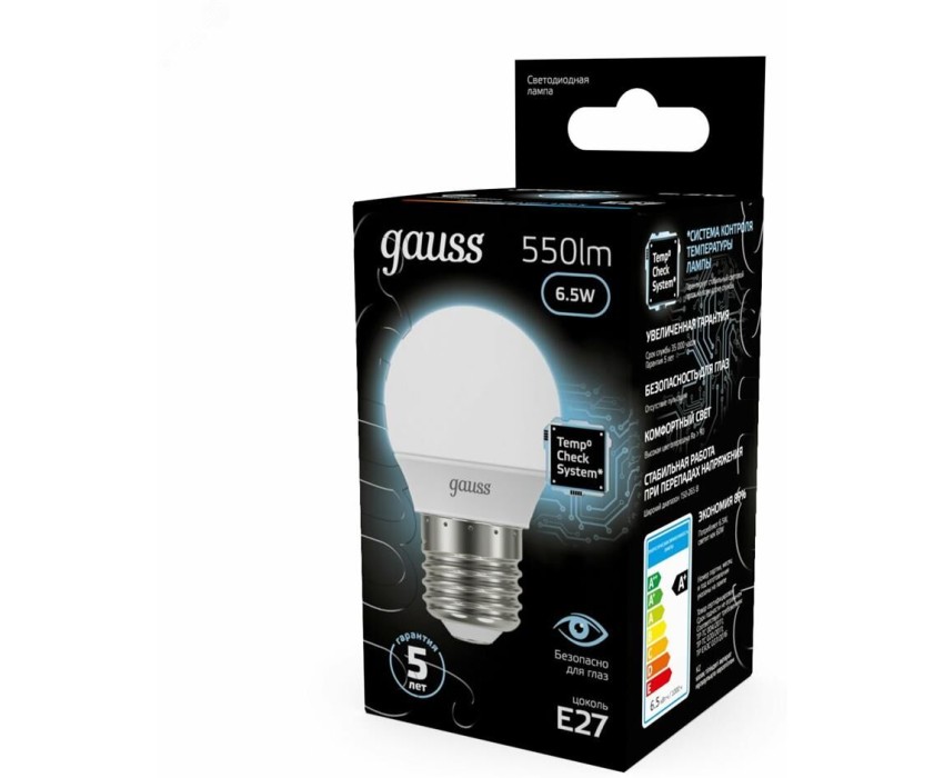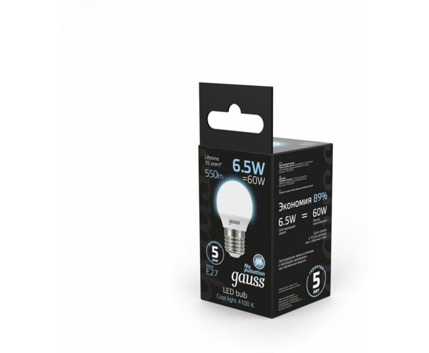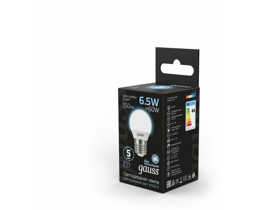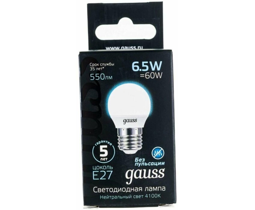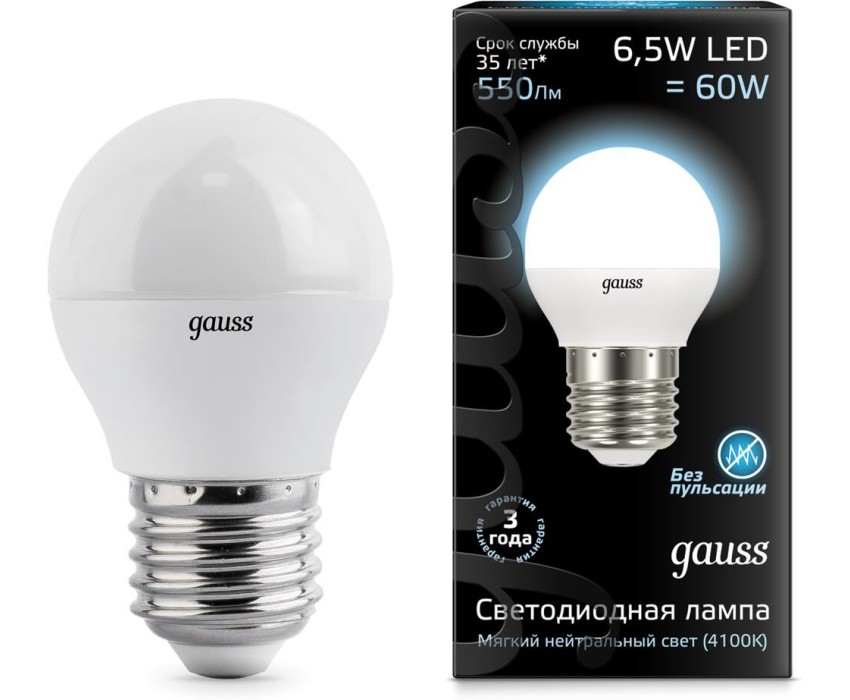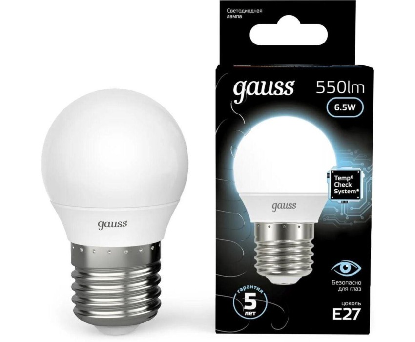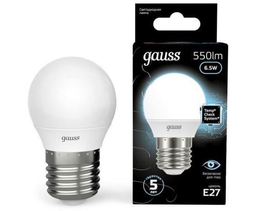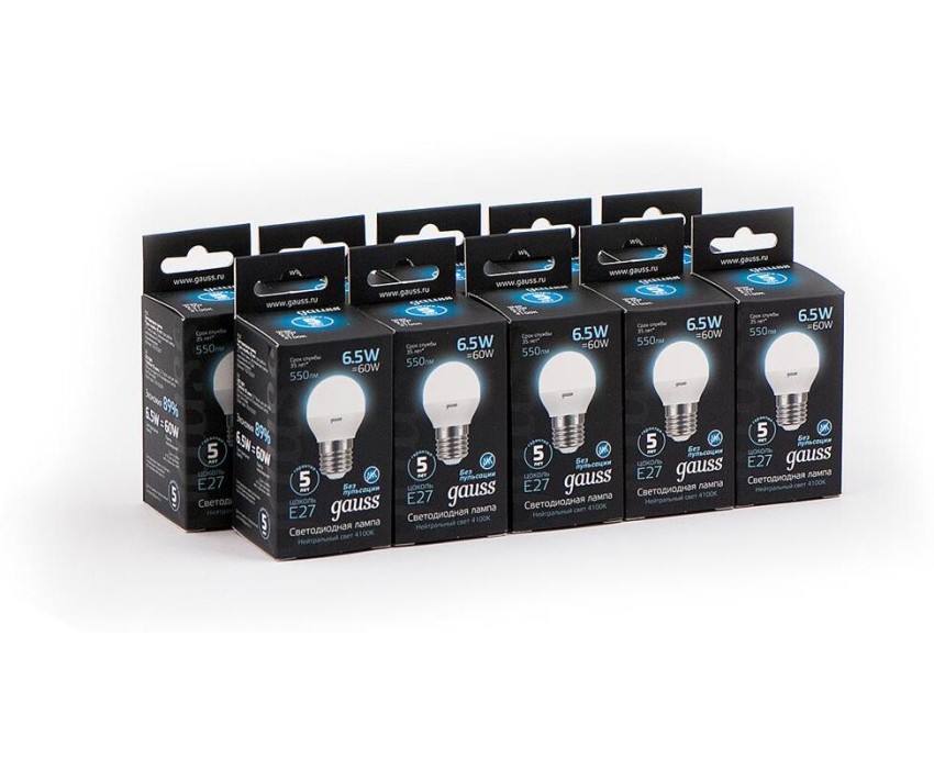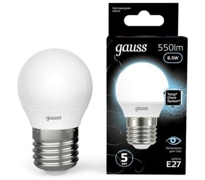 Лампочка GAUSS Лампа LED E27, шар, 6.5Вт, 10 шт. [105102207]