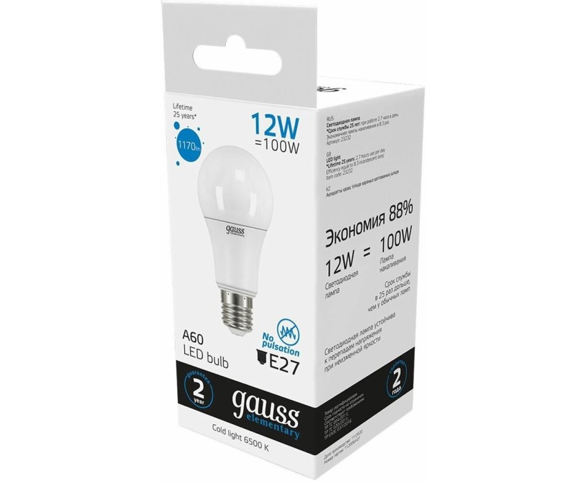 GAUSS Упаковка ламп LED E27, груша, 12Вт, 10 шт. [23232]
