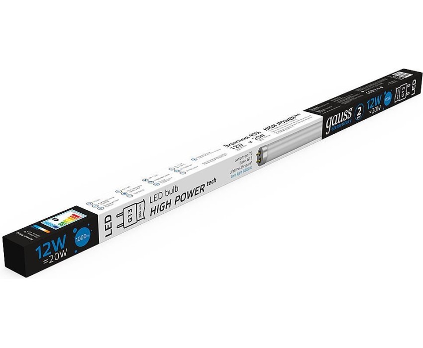 GAUSS Лампа LED G13, трубка, 12Вт, 93032, одна шт
