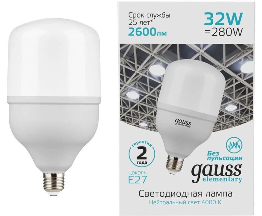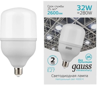 Тип товара: светодиодная. Мощность: 32. Световой поток: 2700. Максимальный срок службы: 25000. Напряжение питания: 220. Патрон: E27. Угол светового пучка: 240. Матовая: да. Форма лампы: цилиндр. Габариты упаковки (ед) ДхШхВ: 0.11x0.105x0.17. Вес упаковки (ед): 0.19. Диммеруемая: нет. Цветовая температура: 6500. Индекс цветопередачи: 80. Цвет свечения: белый холодный. Тип лампы: светодиодная. Степень защиты: IP20. Гарантия: 24 мес.. Количество ламп: одна шт.. Параметры: 2700 lm. Цоколь: E27. Количество ламп: одна шт. Форма: цилиндр. Угол светового пучка: 240 °. Мощность: 32 Вт. Напряжение: 220 В