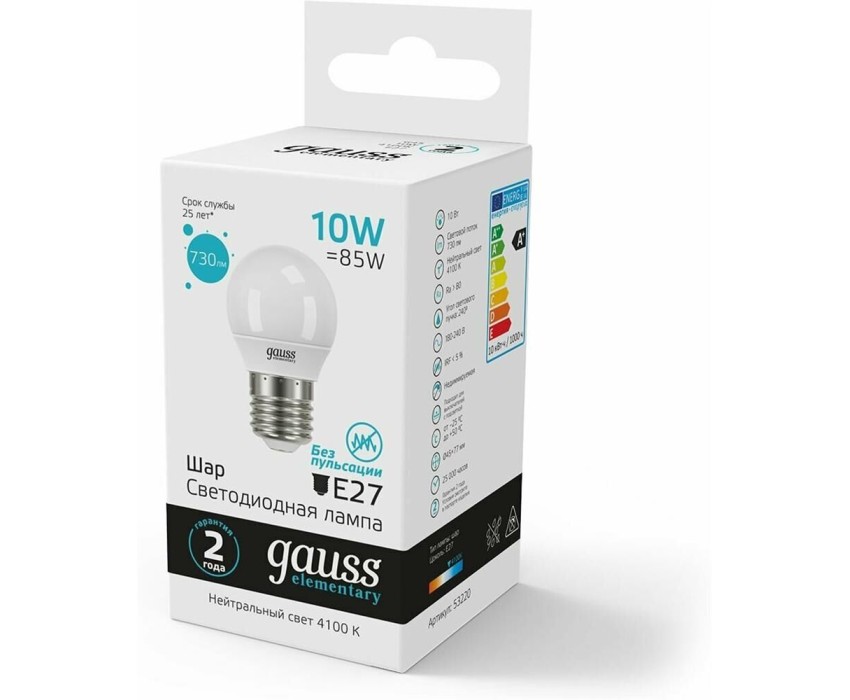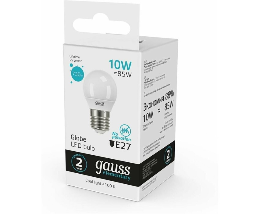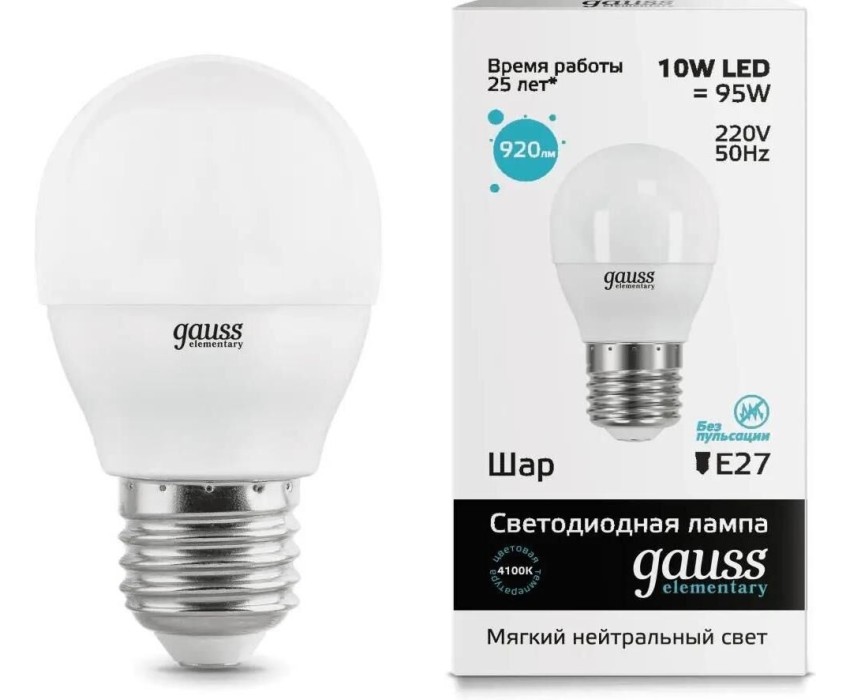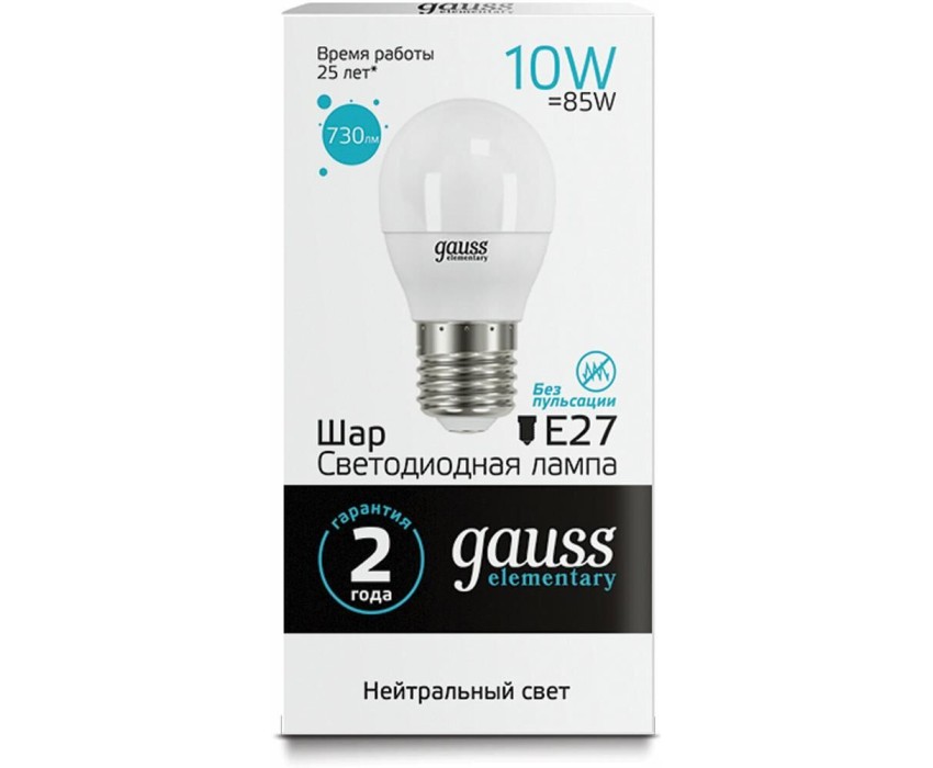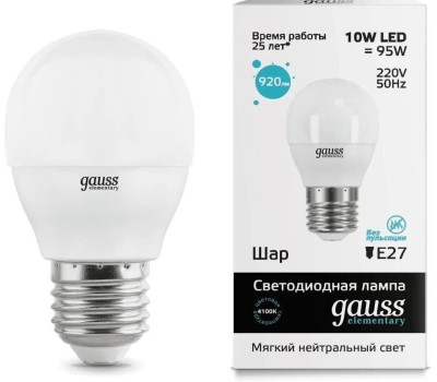 GAUSS Лампа LED E27, шар, 10Вт, одна шт. [53220]
