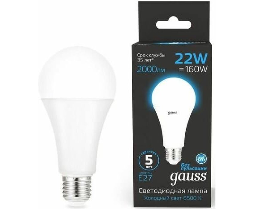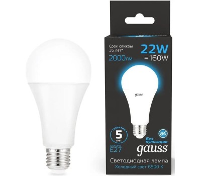 GAUSS Лампа LED E27, груша, 22Вт, 102502322, одна шт