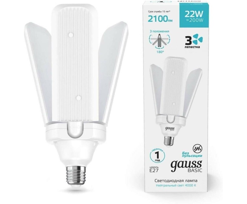 Серия: Basic. Тип товара: светодиодная. Мощность: 22. Световой поток: 2100. Максимальный срок службы: 15000. Напряжение питания: 220. Патрон: E27. Угол светового пучка: 360. Класс энергоэффективности: A+. Матовая: да. Форма лампы: клевер. Габариты упаковки (ед) ДхШхВ: 0.095x0.091x0.244. Вес упаковки (ед): 0.31. Диммеруемая: нет. Цветовая температура: 4000. Индекс цветопередачи: 89. Цвет свечения: белый нейтральный. Тип лампы: светодиодная. Степень защиты: IP20. Гарантия: 12 мес.. Количество ламп: одна шт.. Цоколь: E27. Мощность: 22 Вт. Напряжение: 220 В. Форма: клевер. Угол светового пучка: 360 °. Параметры: 2100 lm. Количество ламп: одна шт
