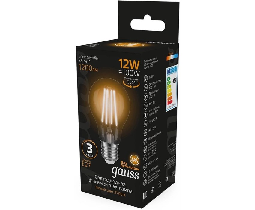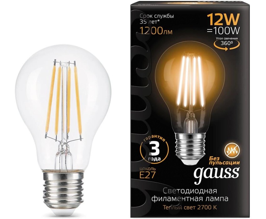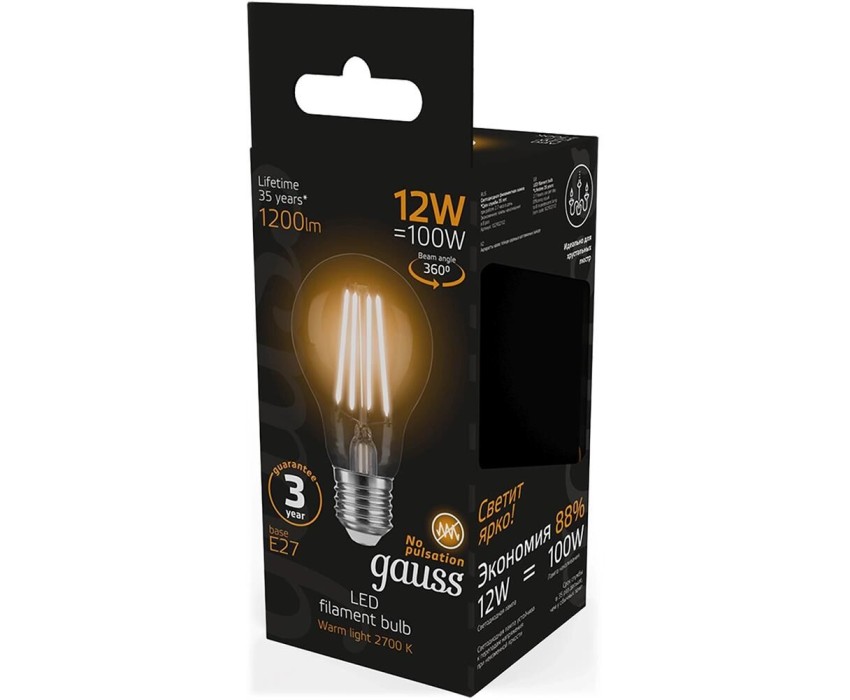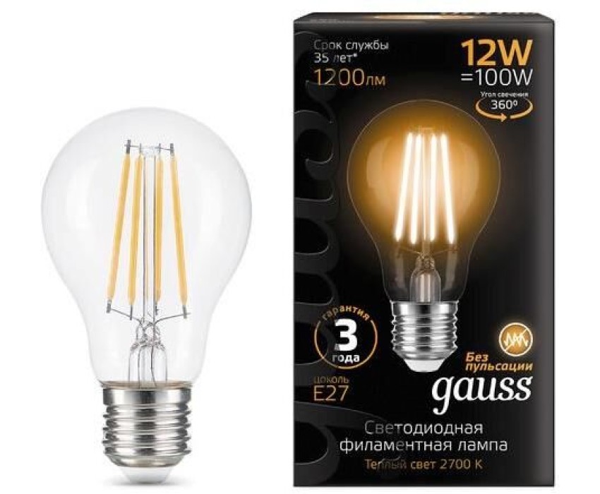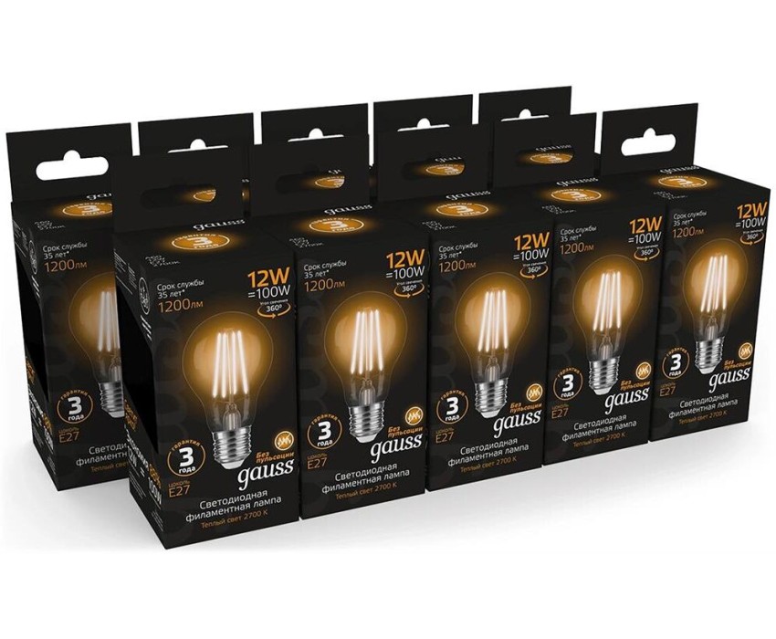 GAUSS Лампа LED E27, груша, 12Вт, 102902112, 10 шт