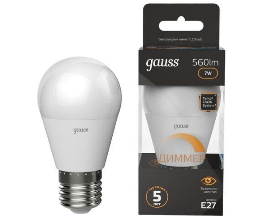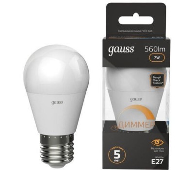 Лампа светодиодная GAUSS Лампа LED E27, шар, 7Вт, 105102107-D, одна шт