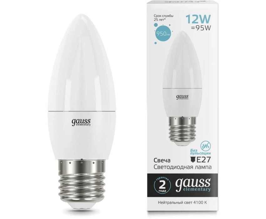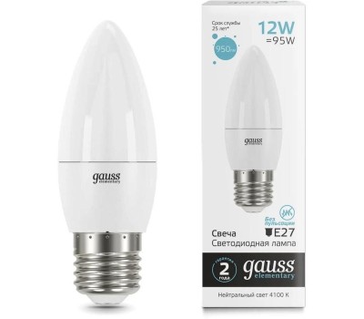 GAUSS Лампа светодиодная Elementary 30222 12Вт цок.:E27 свеча 220B св.свеч.бел.нейт. (упак.:10шт)