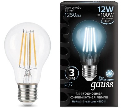 GAUSS Лампа светодиодная Filament 102902212 12Вт цок.:E27 груша 185B св.свеч.бел.нейт. грушевидная (упак.:10шт)