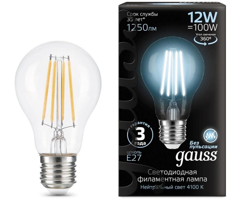 Тип товара: светодиодная Тип лампы: светодиодная Бренд: GAUSS Модель: 102902212 Серия: Filament Мощность: 12 Вт PartNumber/Артикул Производителя: 102902212 Патрон: E27 Высота товара: 105 мм Колба: грушевидная Диаметр: 60 мм Цветовая температура: 4100 К Количество ламп: 10 шт Цвет свечения: белый нейтральный Энергосберегающая: ДА Световой поток: 1250 lm Максимальный срок службы: 35000 ч Угол светового пучка: 360 ° Степень защиты: IP20 Индекс цветопередачи: 92 Напряжение питания: 185 В Габариты упаковки (ед) ДхШхВ: 0.314x0.228x0.03 м Объем упаковки (ед): 0.00214776 м3 Вес упаковки (ед): 0.553 кг Страна производства: Китай Цвет: прозрачный