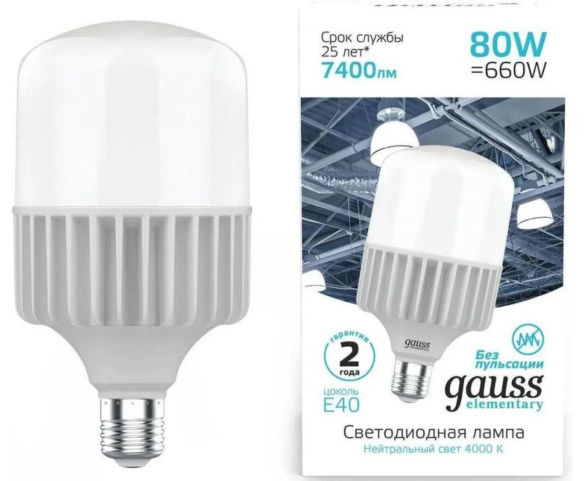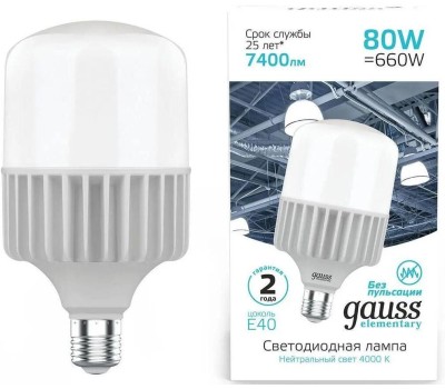 GAUSS Лампа светодиодная Elementary 63428 80Вт цок.:E40 цилин. 220B св.свеч.бел.нейт. (упак.:1шт)