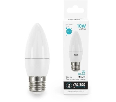 GAUSS Лампа светодиодная Elementary 30220 10Вт цок.:E27 свеча 220B св.свеч.бел.нейт. (упак.:10шт)