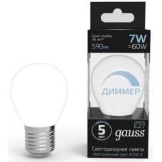 GAUSS Лампа светодиодная 105102307 6.5Вт цок.:E27 шар 220B св.свеч.бел.хол. (упак.:10шт)
