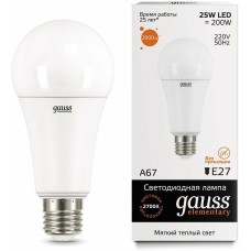 GAUSS Лампа светодиодная Elementary 25Вт цок.:E27 груша 220B св.свеч.бел.теп. A67 (упак.:10шт) (73215)