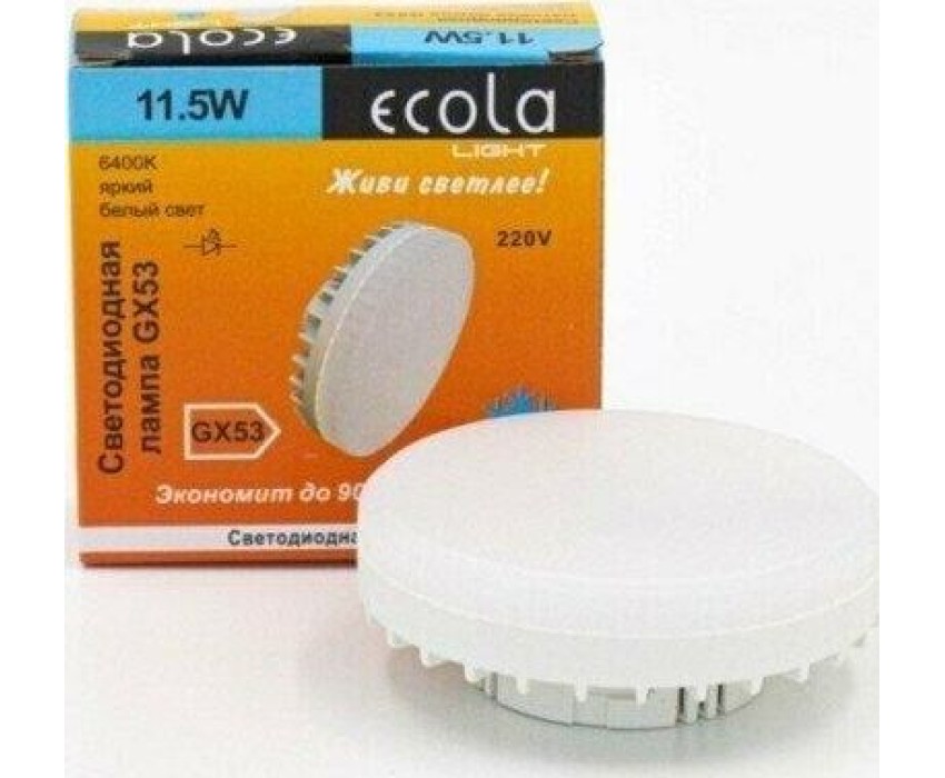 Лампа светодиодная ECOLA T5PD11ELC LIGHT GX53 11,5W TABLET 220V 6400K 27X75 матовая 30000H