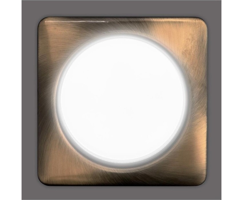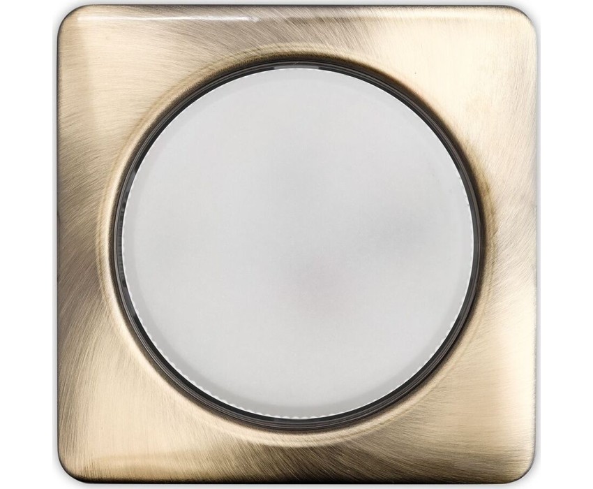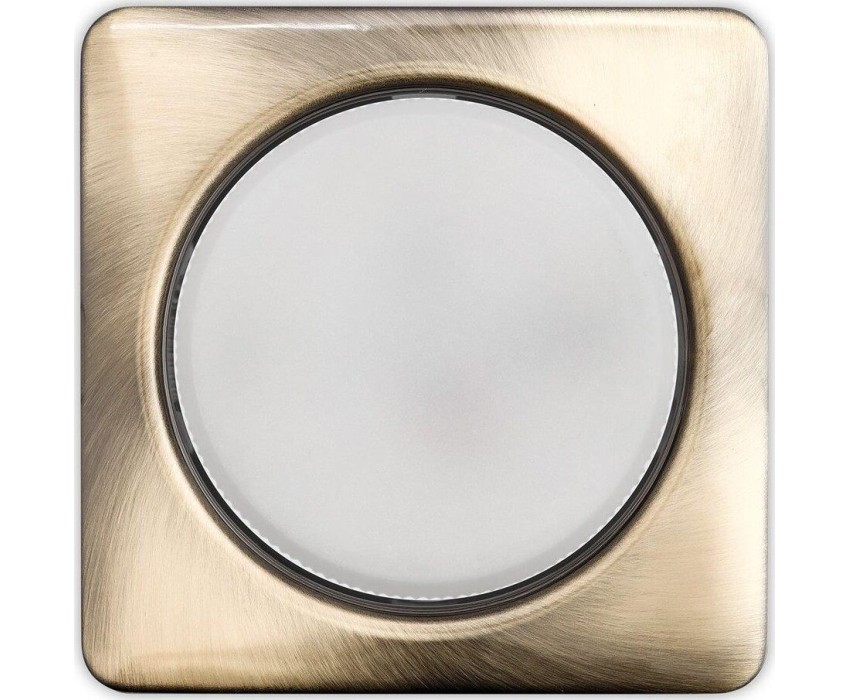Напряжение: 220-240 В; 50/60 Гц; Максимальная мощность ламп: 13 Вт; Цоколь: GX53 (входит в комплект); Тип лампы: GX53 (не входит в комплект); Размер св-ка: 107*107*40 мм; Размер вырезного отверстия: 90 мм; Материал: металл; Цвет: бронза; Термокольцо: вхо