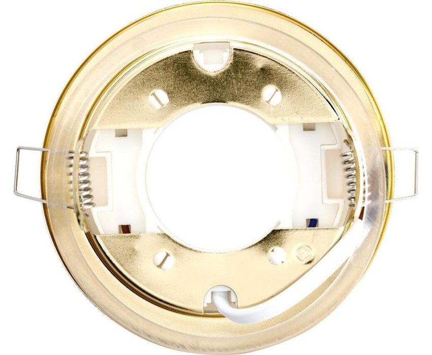 Напряжение: 220-240 В; 50/60 Гц; Максимальная мощность ламп: 13 Вт; Цоколь: GX53 (входит в комплект); Тип лампы: GX53 (не входит в комплект); Размер св-ка: 106*38 мм; Размер вырезного отверстия: 90 мм; Материал: металл; Цвет: золото; Термокольцо: не вход