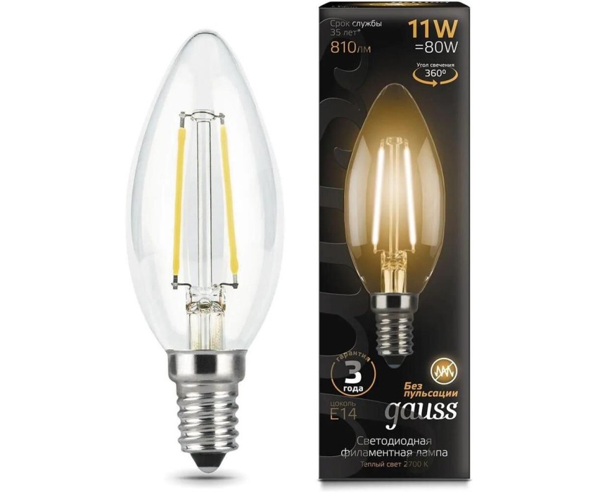 GAUSS Упаковка ламп филаментная E14, свеча, 11Вт, 10 шт. [103801111]