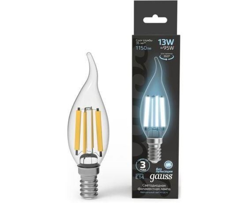 GAUSS Упаковка ламп филаментная E14, свеча на ветру, 13Вт, 10 шт. [104801213]
