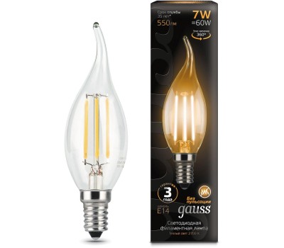 GAUSS Лампа светодиодная Filament 7Вт цок.:E14 свеча 220B св.свеч.бел.теп. CF35 (упак.:1шт) (104801107)