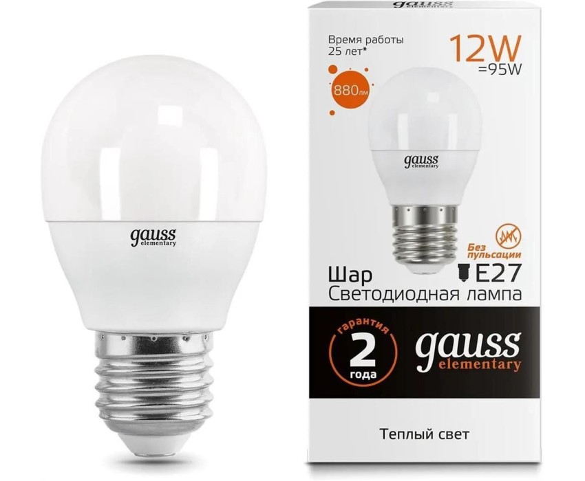 Тип товара: светодиодная. Мощность: 12. Световой поток: 880. Максимальный срок службы: 25000. Напряжение питания: 220. Патрон: E27. Угол светового пучка: 240. Класс энергоэффективности: A+. Матовая: да. Форма лампы: шар. Габариты упаковки (ед) ДхШхВ: 0.23x0.18x0.051. Вес упаковки (ед): 0.45. Диммеруемая: нет. Цветовая температура: 3000. Индекс цветопередачи: 80. Цвет свечения: белый теплый. Тип лампы: светодиодная. Степень защиты: IP20. Гарантия: 24 мес.. Количество ламп: 10 шт.. Параметры: 880 lm. Мощность: 12 Вт. Цоколь: E27. Форма: шар. Угол светового пучка: 240 °. Напряжение: 220 В. Количество ламп: 10 шт