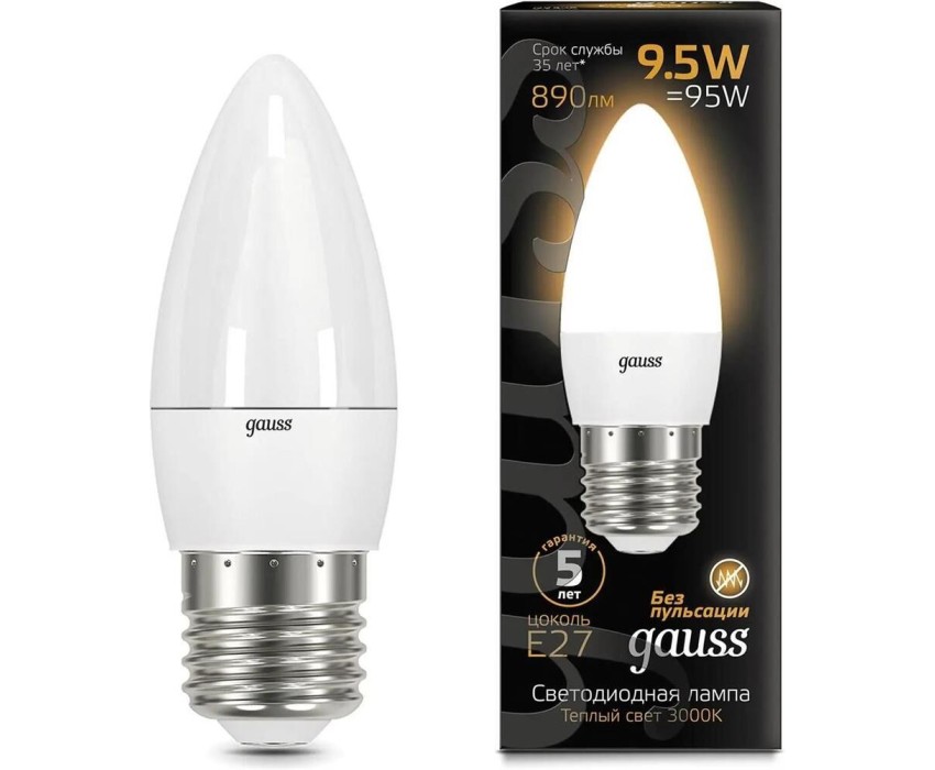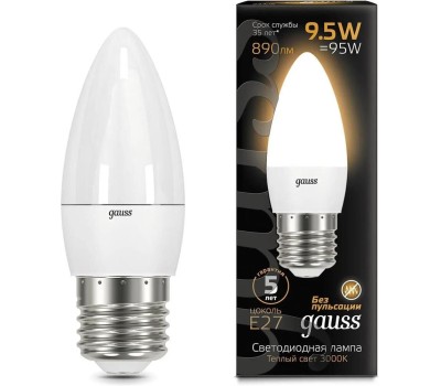 GAUSS Упаковка ламп LED E27, свеча, 9.5Вт, 10 шт. [103102110]