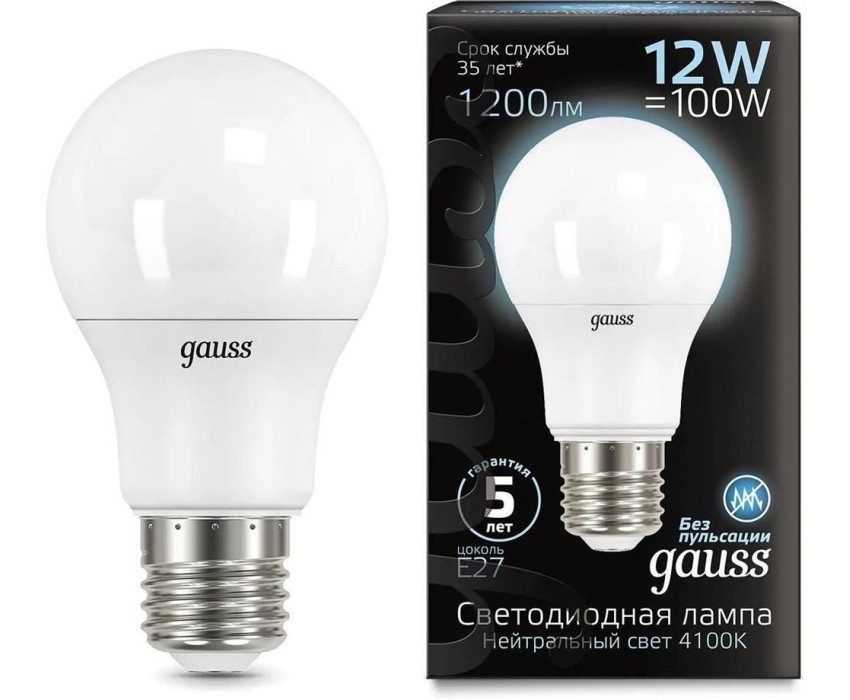 GAUSS Упаковка ламп LED E27, шар, 12Вт, A60, 10 шт. [102502212]