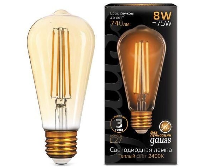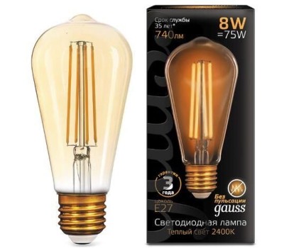 GAUSS Упаковка ламп филаментная E27, эдисон, 8Вт, ST64, 10 шт. [157802008]