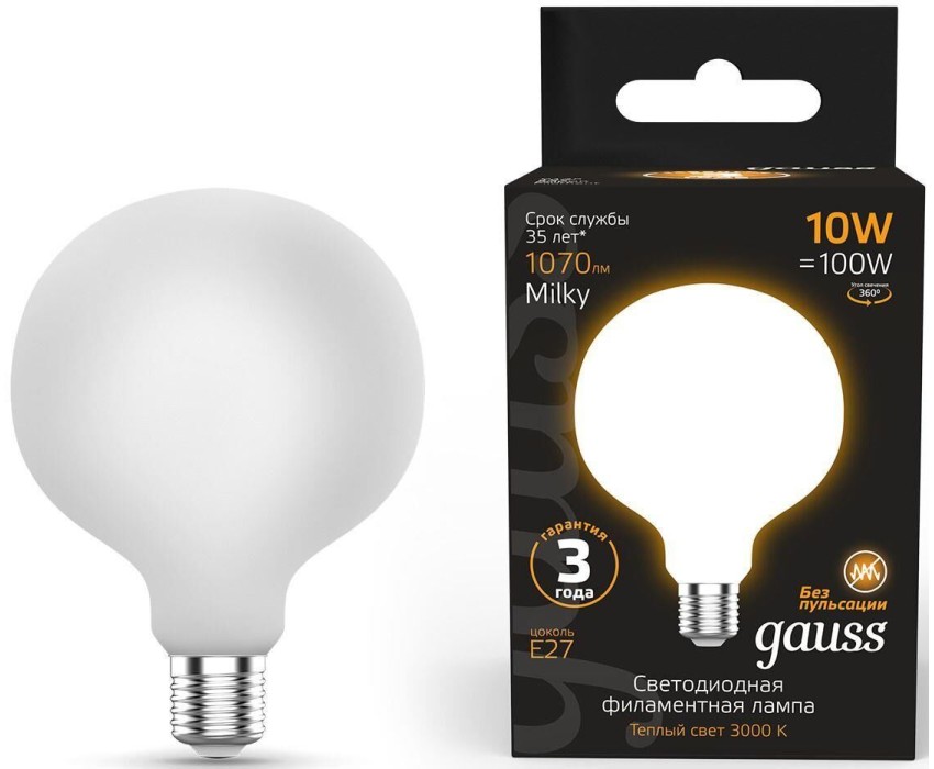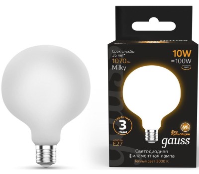 GAUSS Лампа светодиодная Filament 189202110 10Вт цок.:E27 шар 220B св.свеч.бел.теп. (упак.:1шт)