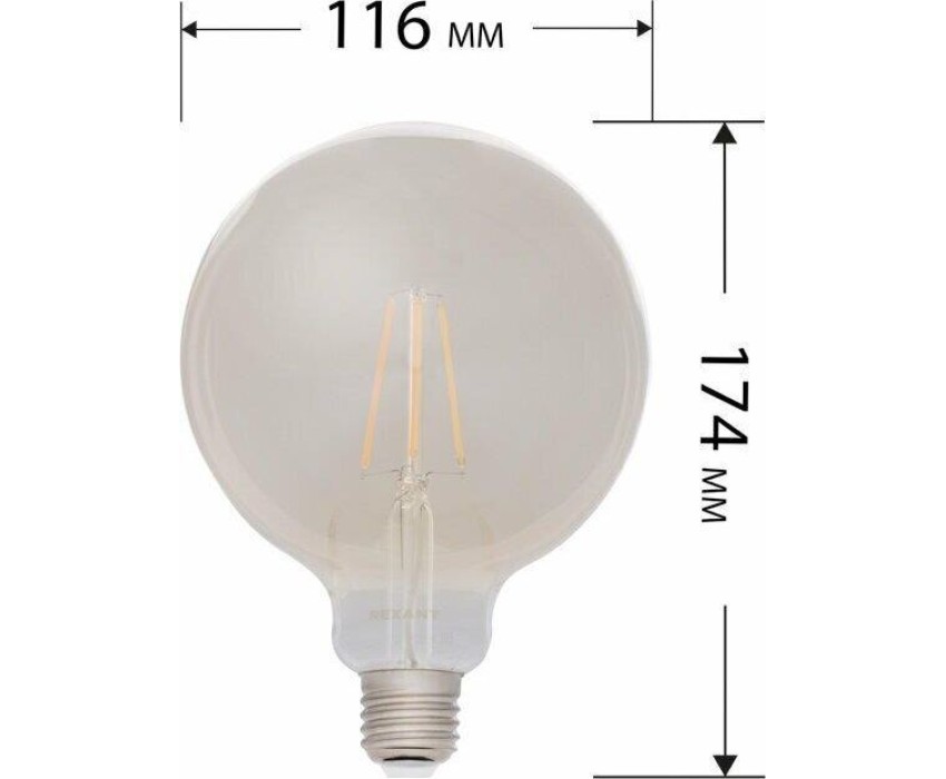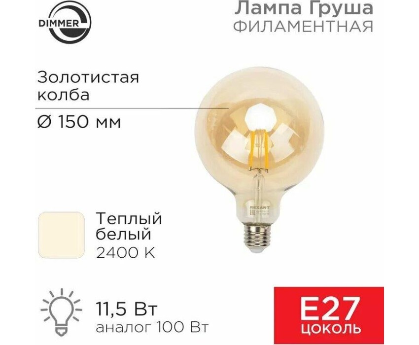 Лампа светодиодная REXANT (604-145) A125 11.5 ВТ 1380 ЛМ 2400K E27 ДИММИРУЕМАЯ ЗОЛОТИСТАЯ КОЛБА