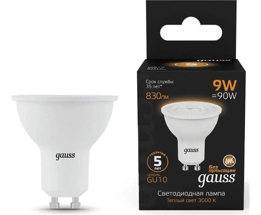 Тип товара: светодиодная. Мощность: 9. Световой поток: 830. Максимальный срок службы: 35000. Напряжение питания: 150. Патрон: GU10. Колба: MR16. Угол светового пучка: 120. Класс энергоэффективности: A+. Отражатель: есть. Форма лампы: рефлектор. Габариты упаковки (ед) ДхШхВ: 0.05x0.05x0.095. Вес упаковки (ед): 0.05. Высота: 57. Диаметр: 50. Диммеруемая: нет. Цветовая температура: 3000. Индекс цветопередачи: 80. Цвет свечения: белый теплый. Тип лампы: светодиодная. Степень защиты: IP20. Гарантия: 12 мес.. Количество ламп: одна шт.. Форма: рефлектор. Параметры: 830 lm. Цоколь: GU10. Угол светового пучка: 120 °. Напряжение: 150 В. Мощность: 9 Вт. Количество ламп: одна шт