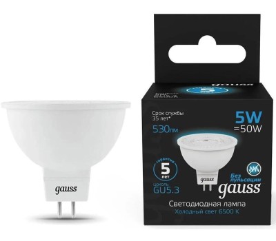 GAUSS Лампа светодиодная 101505305 5Вт цок.:GU5.3 рефлек. 220B св.свеч.бел.хол. (упак.:10шт)