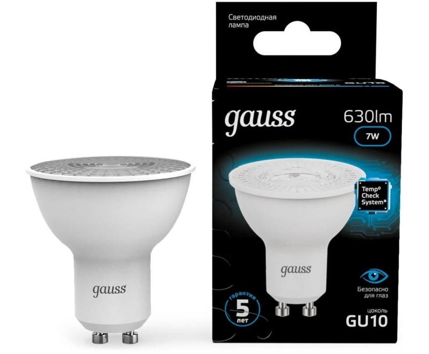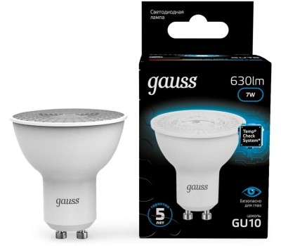 GAUSS Лампа светодиодная 101506307 7Вт цок.:GU10 рефлек. 220B св.свеч.бел.хол. MR16 (упак.:10шт)