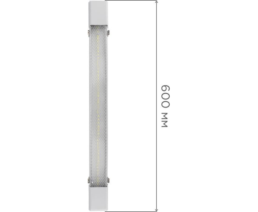 Тип источника света: встроенный светодиодный модуль (SMD) Материал плафона или рассеивателя: поликарбонат призма Номинальная мощность, Вт: 18 Диапазон рабочих напряжений, В: 165В…265В Коэффициент мощности, cosϕ: 0,9 Световой поток, Лм: 2070 Световая отдача, Лм/Вт: 115 Цветовая температура, К: 6500 Индекс цветопередачи, Ra: 80 Угол рассеивания, град: 120 Длина, мм: 600