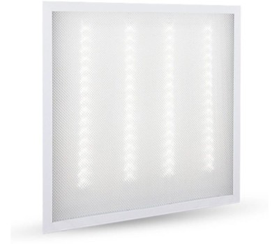 Панель светодиодная . Мощность 36 Вт, цветовая температура 6500К, размер 595х595х17мм, источник света - встроенные светодиоды, световой поток - 3600лм, индекс цветопередачи (Ra) 80+, коэффициент пульсации <5%, степень защиты IP40, корпус выполнен из металла, призматический рассеиватель из пластика, встроенный блок питания.
