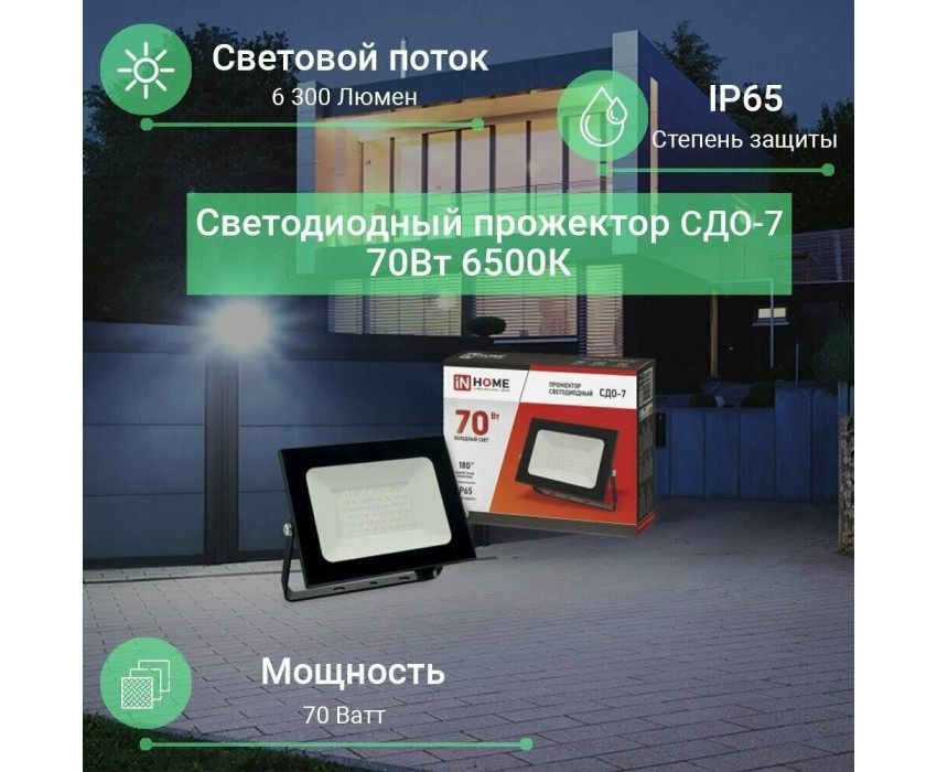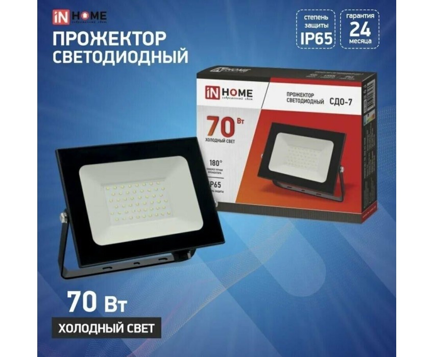 Влагозащищенный светодиодный прожектор REXANT мощностью 70 Вт предназначен для наружного и внутреннего освещения. Благодаря высокому уровню герметичности (степень защиты IP65) прожектор может использоваться для наружного освещения фасадов зданий, рекламных объектов, детских и спортивных площадок, памятников и инсталляций, промышленных и складских помещений, внутренних дворов, придомовых территорий. Оборудован поворотной скобой, позволяющей легко регулировать угол освещения. Световой поток составляет 4000 Лм. Цветовая температура свечения прожектора - 6500К. Прочный алюминиевый корпус не подвержен деформации и устойчив к механическим повреждениям.