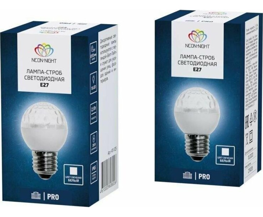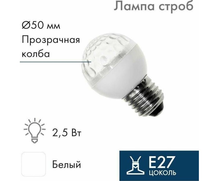 NEON-NIGHT Лампа-строб светодиодная, диаметр 50, E27, 18 LED, 2,5Вт, БЕЛЫЙ, 230В