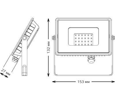 Тип: Прожектор уличный. Тип прожектора: светодиодный. Напряжение питания: 200-240. Мощность: 20. Температура эксплуатации: -45...+50. Вес: 0.4. Габариты упаковки (ед) ДхШхВ: 0.17x0.14x0.034. Вес упаковки (ед): 0.42. Световой поток (lm): 1700. Степень защиты: IP65. Цветовая температура: 6500. Материал основания/арматуры: алюминий. Гарантия: 36 мес.. Цвет корпуса: серый. Размеры: 158 х 132 х 137 мм. Мощность: 20 Вт